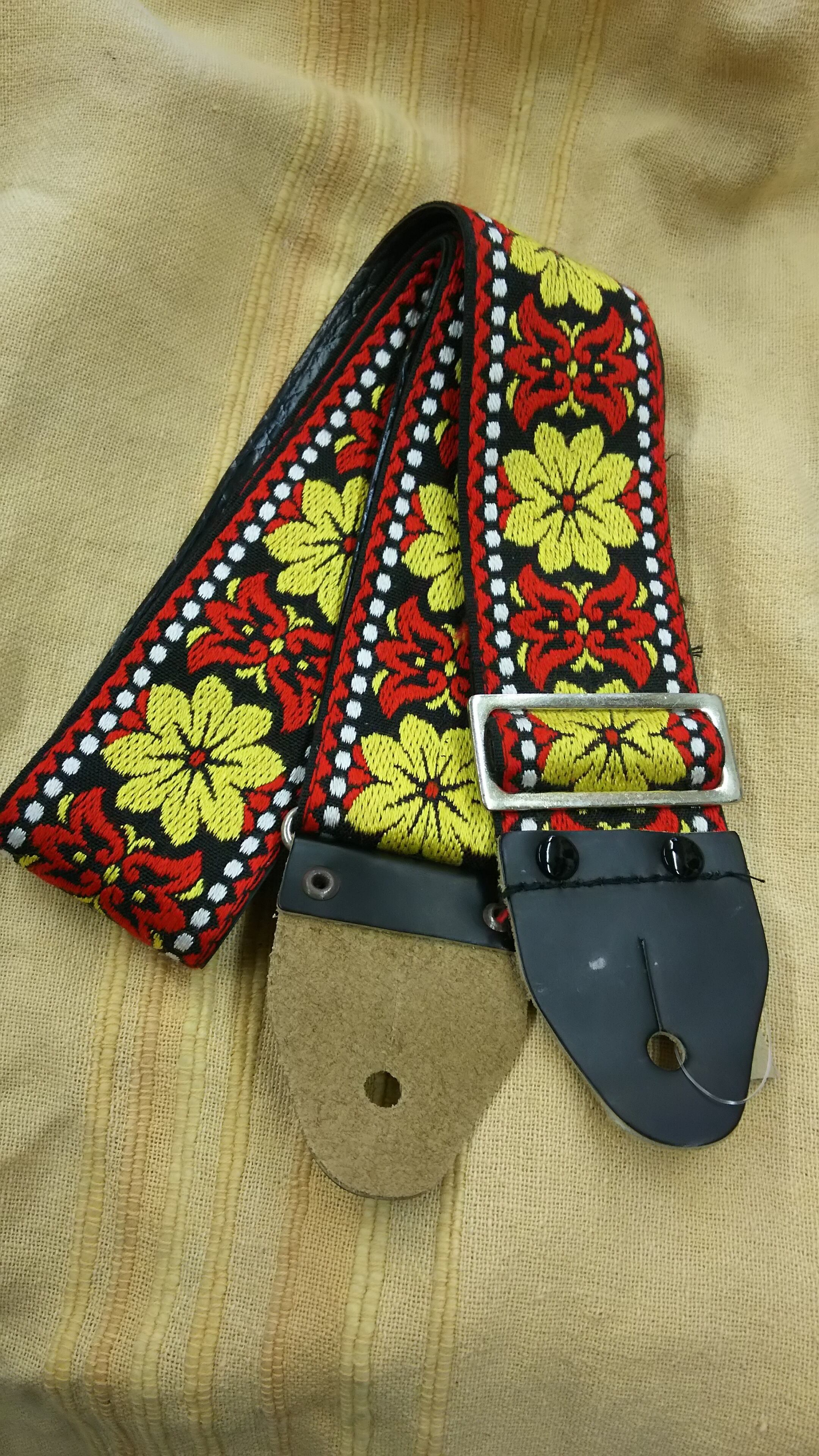 '70s~'80sあたりには主流だったジャガード織のストラップです。ACEなど本家のものではなく主に国産の復刻版ですが、中古ギターなどを買い入れたときに一緒に引き取ったりしたものの中から少しずつストックしたものです。ほぼデッドストックの状態できれいです。古いものですが、じゅうぶんに使用できるものと思います。古きよき時代のストラップはいかがでしょう?(幅約50mm、最大長約1300mm)