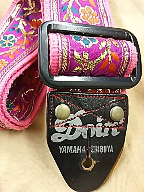 使われなくなっていたストラップをインドの花柄のミラーリボンでリメイクしました。インドではキラキラ光るミラーやスパンコールは魔除けになると信じられているそうです。ベースになっているストラップは使えそうなものが入ったときに少しずつ取っておいたもので、みなそれぞれ違うものなので、ひとつとして同じものはありません。もちろん機能的な部分が大切なストラップですが、ちょっと人と違った色や柄で少しだけオシャレしてみるのはどうでしょう?もちろんギターだけでなくストラップピンが着いていればウクレレにも。あるいは工夫次第で他のものにも使えそうです。(幅約50mm、最大長約1250mm)