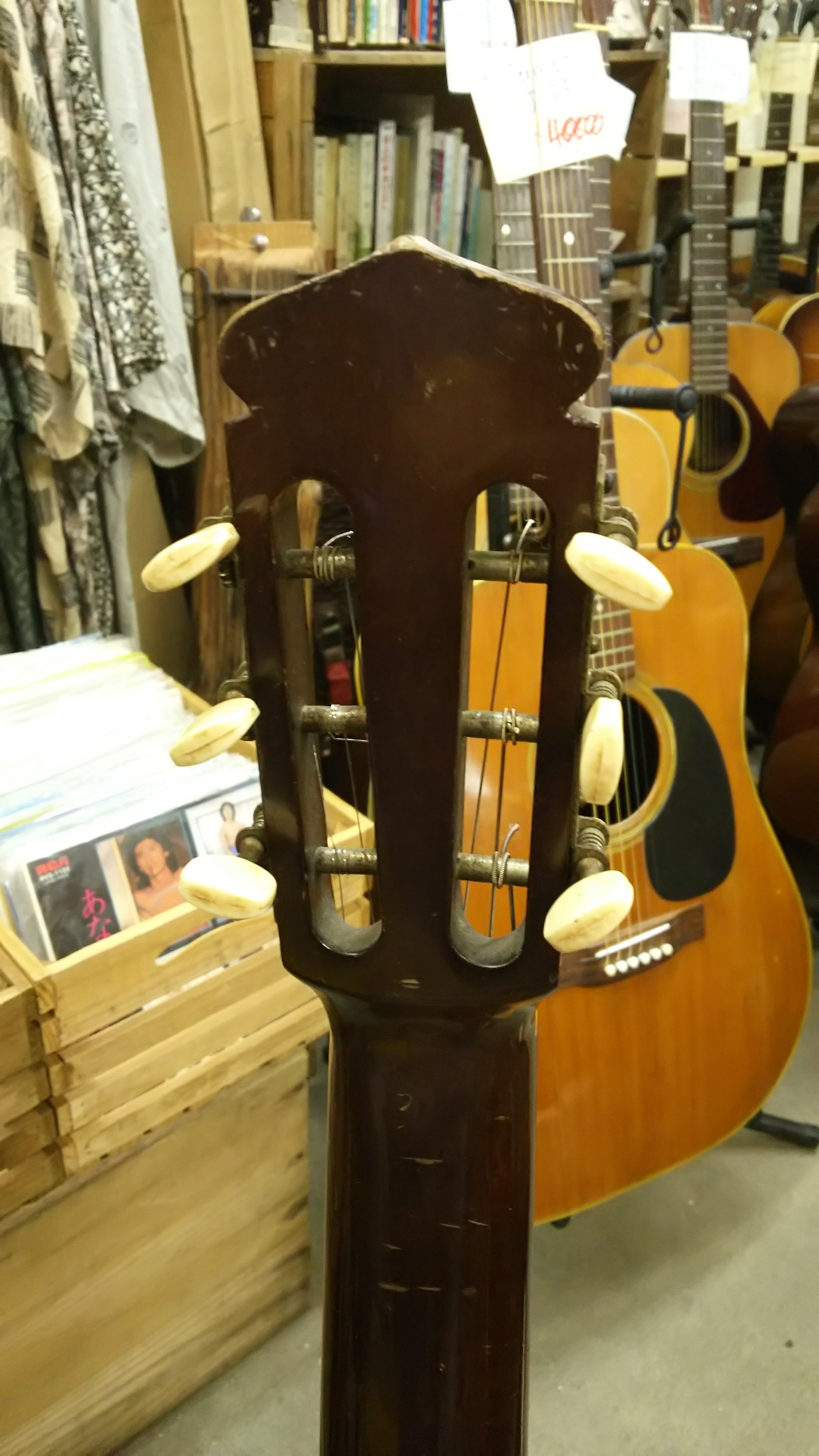 年式相応の劣化、傷等多く、フィンガーボードローポジションにはかなり弾き込んだ跡がありますが、ネックの状態など良好で弦高低く弾きやすいです。サドルは2mm軟鉄丸棒にしてあります。